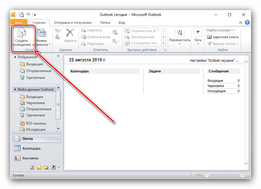 - Создание нового письма. Откройте Outlook и перейдите во вкладку «Главная», затем нажмите «Создать сообщение», чтобы открыть окно нового письма.