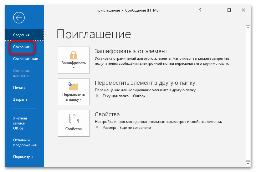 - Предварительные действия. Перед началом процедуры удостоверьтесь, что все требуемые сообщения сохранены в вашем почтовом хранилище. Если требуется, подготовьте новые письма для последующей пересылки. Для этого: составьте текст сообщения и в главном меню кликните «Файл» → «Сохранить». Определите место хранения (к примеру, раздел «Черновики»).